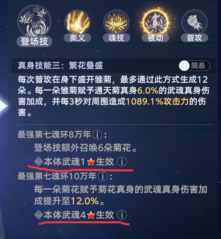 触发条件:同时满足队伍七环最高年份+菊花本体武魂星级。