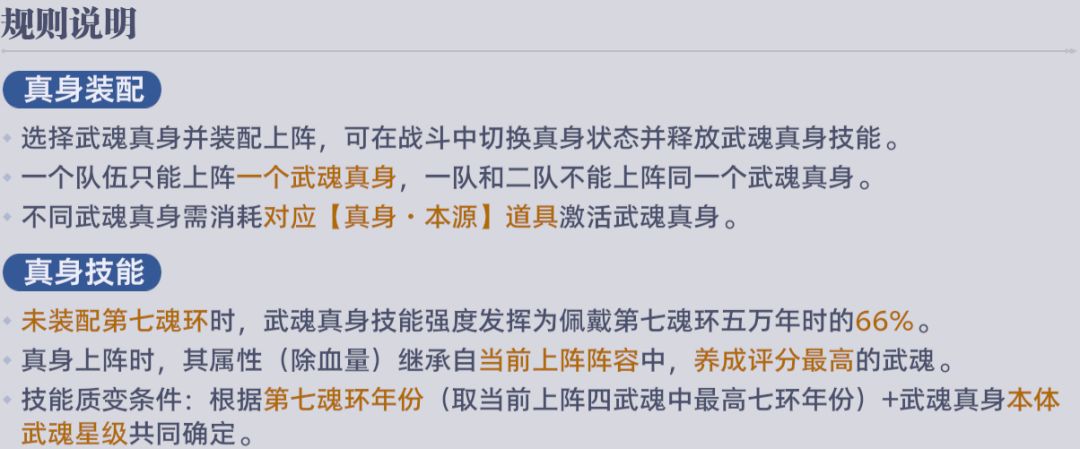 2. 激活条件:不同武魂真身需消耗对应真身本源激活;未装配七环时,真身技能仅发挥66%的5万年魂环效果。
