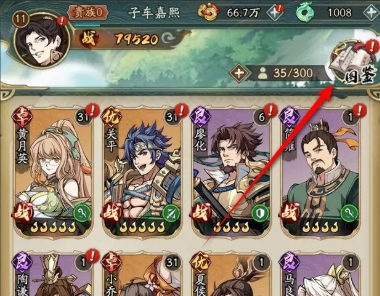 3、在武将页面,点击右上角的图鉴功能前往;