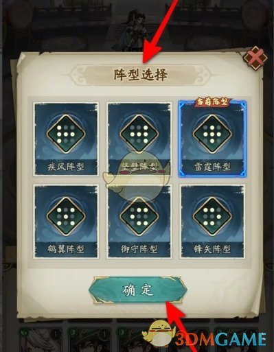 4、最后在阵型选择页面,选择对应的阵型点击确定即可。
