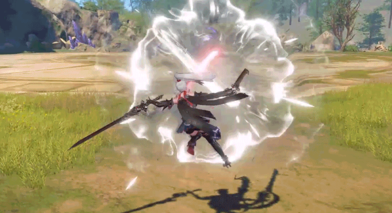 她的普攻在双剑和大剑下有着不同的攻击形式,她的“瞬斩”会让双剑旋转着袭击目标,释放后再次点普攻会进行一次追击,她的“现世”能进入到双剑状态,在双剑下释放可消耗魂力造成额外伤害,长按普攻会进行乱舞,乱舞持续一段时间后会打出终结一斩,消耗王阴、圣阳层数来造成伤害。