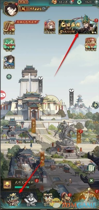1、英雄试炼可以在右上角的活动页面进入,也可以在左侧的主城前往试炼;