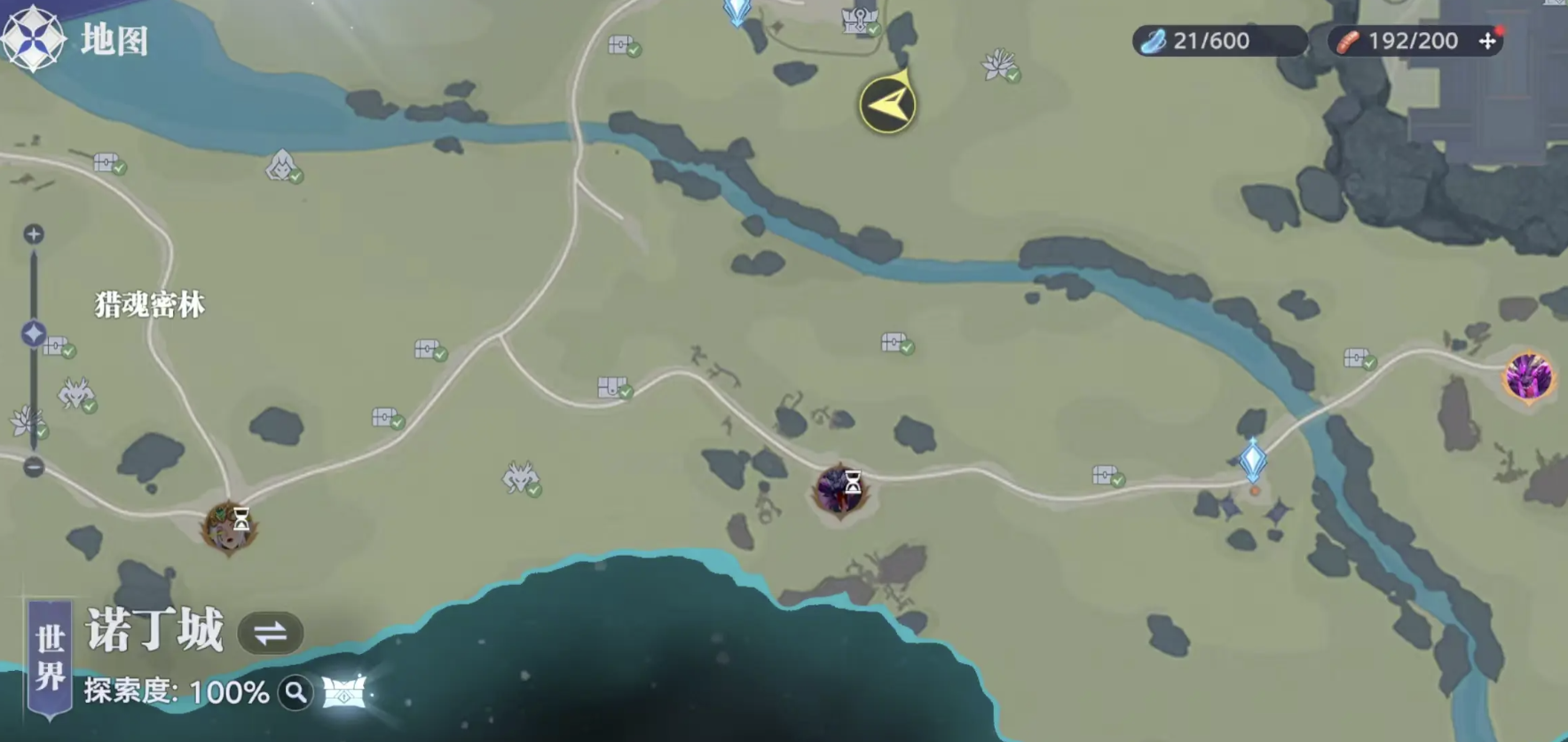猎魂森林区域-角色抵达猎魂森林后,第一个宝箱就在传送点的左侧,稍微调整视角就能看到。接着沿坡道向上方向走,直到遇到卖烤肉的商人,第二个宝箱就在他身边。继续深入地图,往前走到遇到“诺丁同学”这名npc的位置,第三个宝箱就藏在他的附近,非常容易发现。