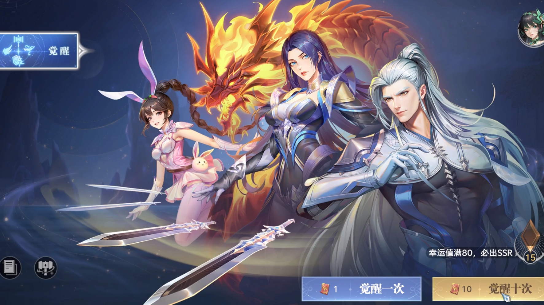 其次就是卡池的保底机制。常驻卡池和限定卡池的保底都是90抽,也就是说玩家90抽是必定会出五星武魂的。还有一种限定卡池的特殊保底机制,180抽必出当期五星up武魂。在游戏中每次觉醒十次就可以提高抽卡概率,当幸运值集满后,下一次抽卡必出一个ssr品质的武魂。在常驻觉醒中,最大幸运值为60,且如果每次觉醒未获得ssr品质武魂则幸运值+1,幸运值越高,抽出ssr品质武魂的概率就越大。
