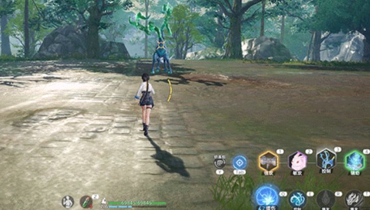 其实它也能够跳起来踩在地面上,这时候地面就会出现红圈的范围,玩家如果再跟它战斗,就需要及时的离开红圈的区域,这个其实是碧玉灵鹿在施展踩地的技能。如果它跳到了空中,那么就能够释放灵火,玩家需要快速的移动,让火焰落空,其实碧玉灵鹿不仅能够放火,它还能够放冰。