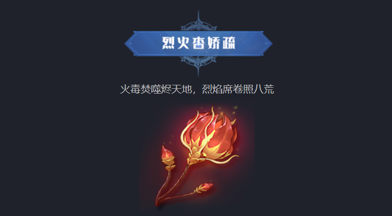 第1种仙草叫做烈火杏娇疏。这种仙草存在的位置不太固定,小伙伴们可以打开大地图查看一下,只要是比较炎热的地区基本上都是会有的,即使是有岩浆的地区也不例外。它的外形就像是一团火焰,极好辨认,只要站在它的附近,就会感觉到浑身炙热。