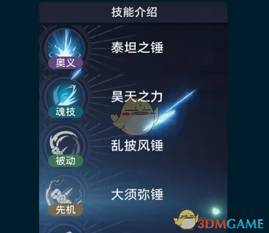 3、魂技叫做昊天之锤,能够召唤一名硕大的锤子砸向前方,并造成范围伤害。