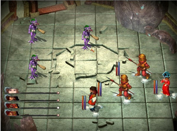 为了配合这次较为轻松活泼的剧情,特地将原本写实的七头身人物比例,改为可爱的四头身比例,另外画面解析度提升为800x600,人物或是场景都便为细致,再配合上剧情中五块风格迥异的大陆,将为玩家带来一段最佳的视觉飨宴。