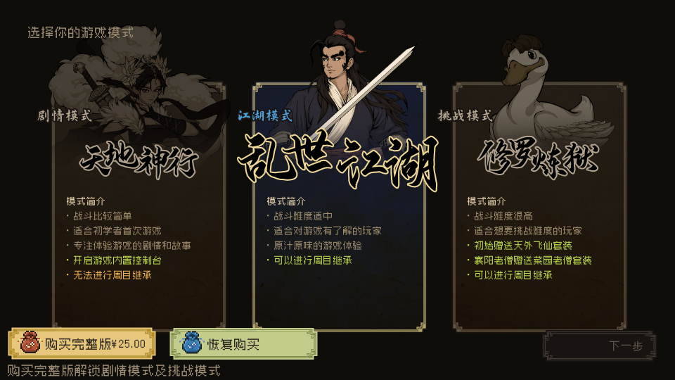 3、你可以自定义你的江湖造型,然后点击下一步;