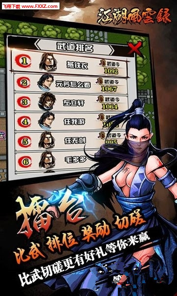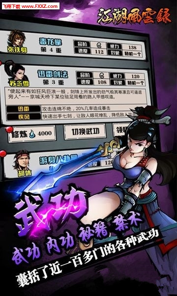 《江湖风云录》作为一款有情怀的RPG游戏,任务和剧情是贯穿游戏的主线,玩家从进入游戏的第一刻起就仿佛进入了一个虚拟的、庞大的武侠世界,在这个世界,玩家只有通过不段的努力才能完成一个又一个充满挑战的任务,从而学到更高深的武学,获得更强力的神兵利器!