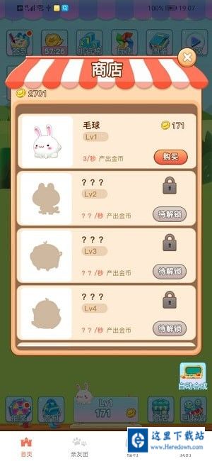 1、各种动物都有可爱的外观,将相同的动物直接合成升级,不断提升金币产量。
