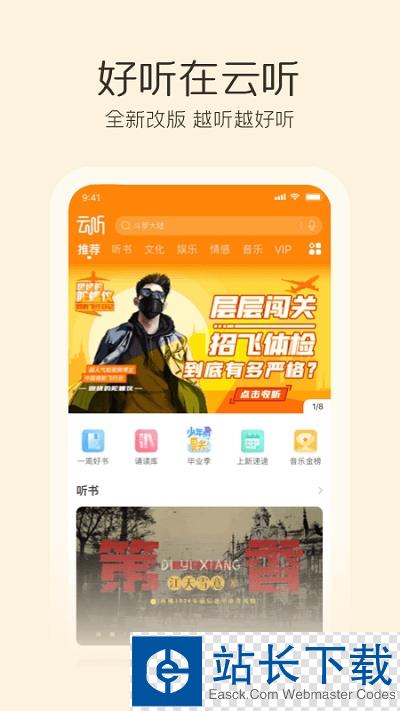 云听免费版app是一款非常好用的听书软件.该app内有着各种各样的知识识音频,读书音频等,让用户随时随地的去听,为那些下班的用户放松心情,该app的功能也是十分强大,不仅有着许多的直播频道,还有着高品质的音乐.一些最新的广播节目也会随时提供给用户.需要的快来西西下载云听免费版app吧.
