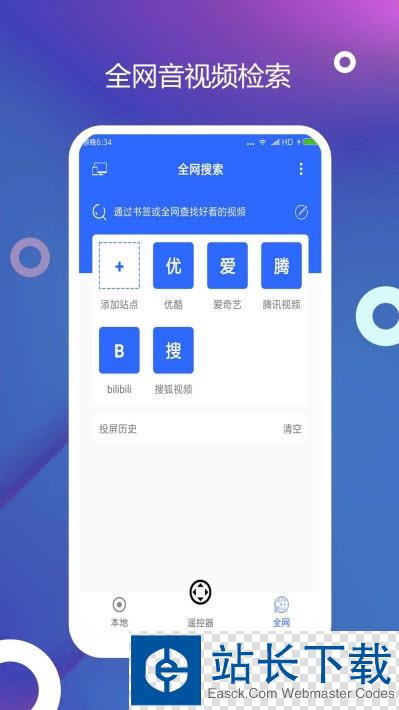 3、全网投屏:为您精选了一些国内知名视频网址投屏,同时也支持您自定义添加网址,非常方便实用。