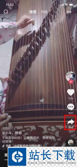 1、在抖音短视频播放界面点击右侧【分享】按钮;