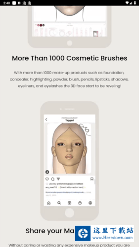 3.多种样式的脸型自由选择,在不同脸型上进行化妆测试,从而确定化妆产品的有效性