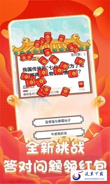 答对五题就能无条件领取红包,答对的越多,赚的越多。