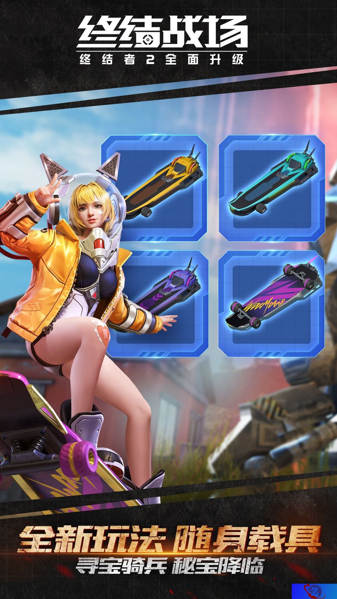 战场升级,火力全开,《终结者2:审判日》全面升级为《终结战场》。秘宝降临终结战场,神秘遗物引爆战斗!夺宝奇兵,全新玩法重磅出击;随身载具,一键起跳施展炫技;33种图鉴,颠覆传统战术竞技!还有全新版本活动、拉好友赢时装、回归福利全新升级等多重福利等你来拿!