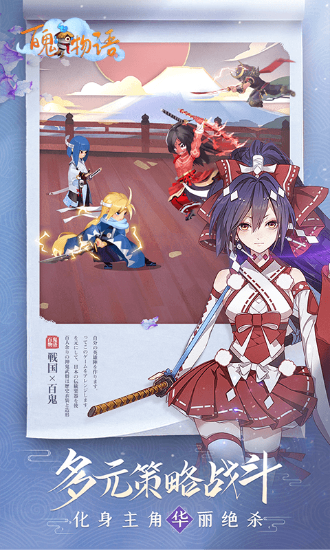 《百鬼物语》以日本战国历史文化为故事背景,因禁忌之书《灭万川集海》的出现,一直隐匿在暗中的忍者势力发起了疯狂的争夺。在这款游戏里,我们可以重回平安战国时代,收集英雄忍者,组建自己的队伍,一路过关斩将,实现一统天下的霸王传说。