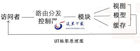 UT在设计之初,借鉴了MVC架构优点,整体使用1个控制器入口来调用所有模型和视图,侧重模型间独立而又紧密的联系,最终形成了模块化开发模式,对模型代码不强制封装。在一个模块中,缓存、模板视图、模型代码互相紧密联系;在整个应用中,模块间互相联系且又相互独立,可以输出模块化视图,亦可输出整体工程化视图。