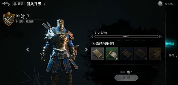 金卡又分为普通金卡佣兵和神选金卡佣兵。普通金卡全员路人脸,可以由绿升阶到金;神选金卡只能通过卡池抽取、兑换或活动赠送等方式获得(两名神选主角特殊,可以随剧情推进升阶到金卡)。神选金卡往往有更优秀、好用的技能,还拥有能够为战场友军提供额外增益效果的神选光环,且仅有神选金卡后续才可进行浸化和沐化阶段的突破。神选角色先不细聊,我们重点来说说普通金卡。除了本体之外,1张同类别绿卡+绿色胸章可以合成1张蓝卡、4张蓝卡+1个蓝色胸章可以合成1张紫卡、3张紫卡+1个紫色胸章可以合成1张金卡。通常0氪或者微氪,正常用产出的资源抽卡池,加上各类奖励,在主线7章左右,也完全可以通过合成获得1-2名普通金卡。再再敲重点:每日限定次数的落难者墓园,解锁后也要记得每日小肝一下,这里可以稳定获取低阶职业突破狗粮。后续养金卡、神选角色,对同名基础佣兵的需求消耗还是蛮大的。