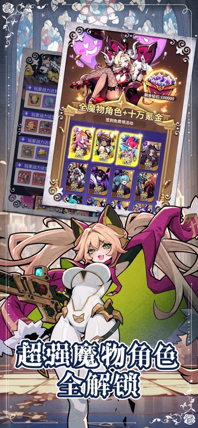 3、【超豪华魔王福利】上线签到领全魔物角色+10万钻!可爱又迷人的反派角色登录就能带回魔王城!