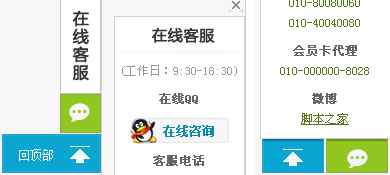 当前位置:首页脚本代码客服代码 → JavaScript实现右侧客服在线浮窗特效源码