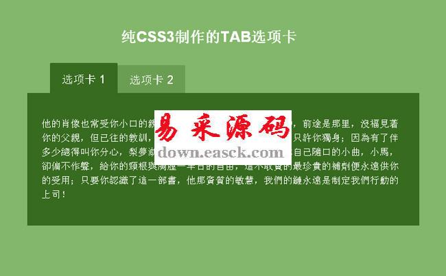 jQuery叶子Tab选项卡是一款基于CSS3+jQuery实现的动态滑动展示的选项卡Tab效果,选项卡在切换过程中带有动态滑动效果,选项卡内可以防止图片、文本或者图文混排内容。