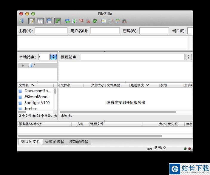 首先,自然是要下载 Filezilla for mac中文破解版,下载安装之后,首次打开将会使下图所示的界面。