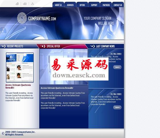 宽屏商务公司HTML5模板里面包含4个子页面,适合商务合作公司网站模板下载。