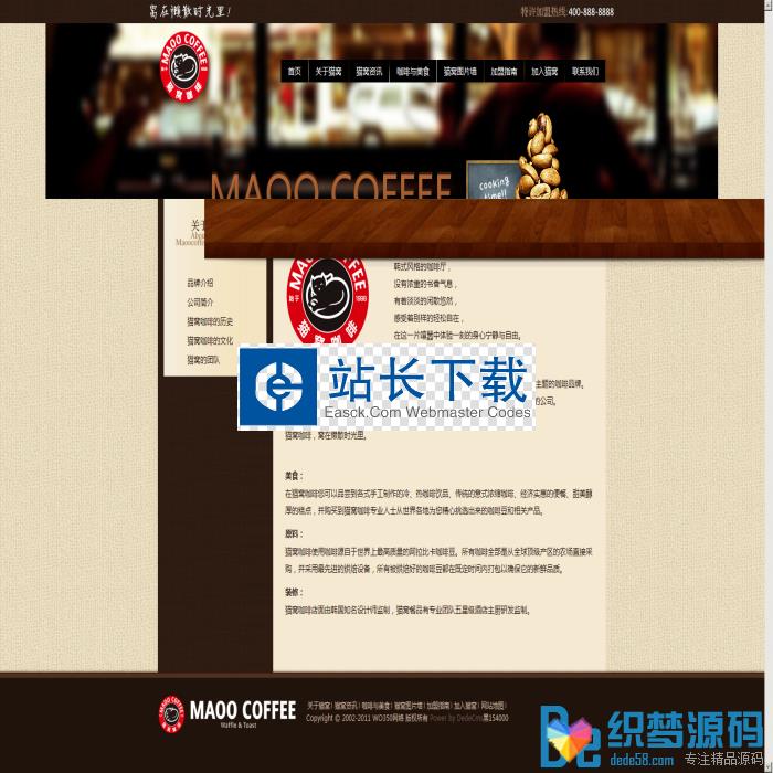 源码名称:温馨精美咖啡店织梦模板