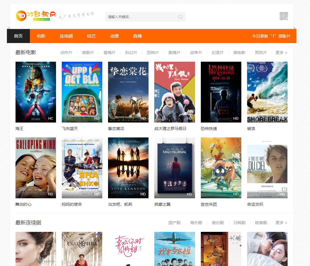 这里下载苹果cms v10 橙色风格影视网站响应式模板—最新资源、最热资源、资源官方下载站