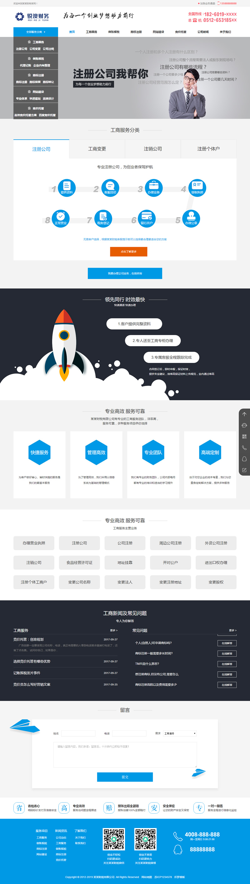 3、适用于财税记账织梦模板、公司注册网站源码;