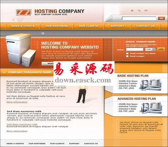 电脑主机模板主机模板 电脑模板 html模板 英文模板 黄色模板 模板下载
