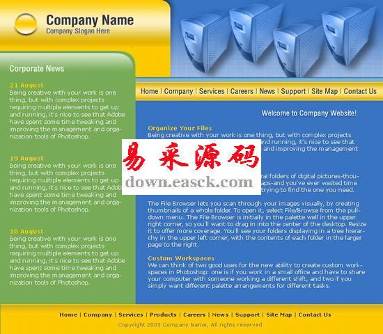 电脑主机模板主机模板 电脑模板 html模板 黄绿色模板 模板下载