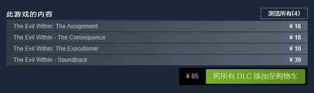 本游戏包含的DLC如下图所示(全部)游戏介绍由开创性的《生化危机》系列的创造者三上真治(Shinji Mikami)和探戈游戏工厂(Tango Gameworks)的才华横溢的团队开发,《邪恶的内