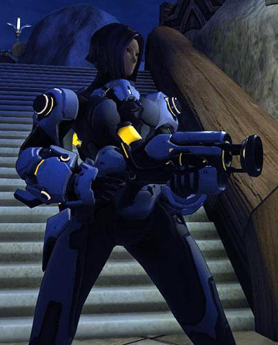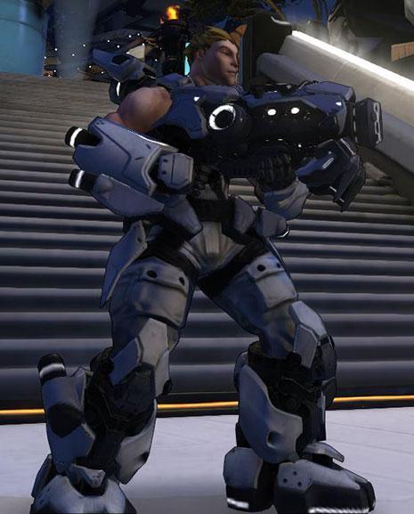"生化战甲"战斗装甲是医护兵、药剂师和战士的结合体,也是战场上的主力支援兵,配备的医疗系统可以治疗伤残和复原小队盟友。他们不仅仅扮演着医疗兵的角色,还能利用毒药展开一场生化战,成为团队的主力输出。