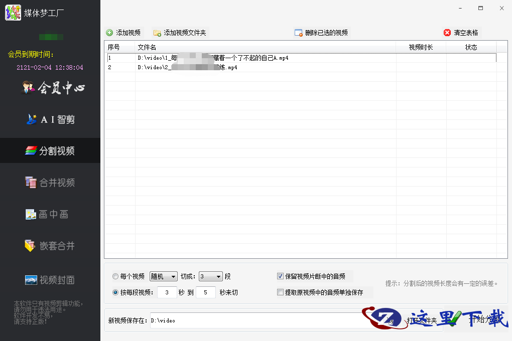 媒体梦工厂是一款专业的视频下载、视频剪辑软件,是自媒体工作者、视频爱好者的辅助软件之一。新用户注册时,激活码写:(A001RDEST5JKI316101748251),可以免费试用3小时。软件界面简洁,功能实用,一键处理,快捷高效。