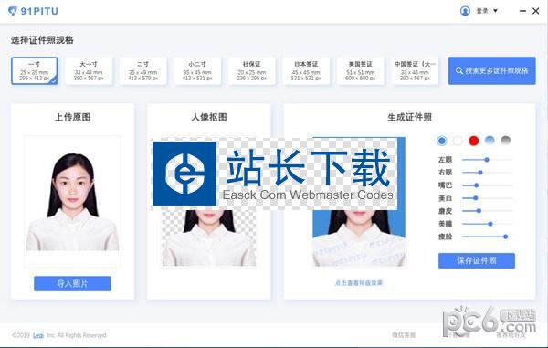 91PITU是一款证件照制作精修软件,软件功能包括抠图、美颜等等,利用算法进行智能抠图,连发丝也能完美抠出,调整优化边缘消除白边,可以达到自然效果呈现,是一款很好的证件照制作软件。功能介绍 原图抠图 用户可以任意上传客户正脸的照片,智能抠图算法会基于人体分割技术、前景/背景检测技术,可以智能抠图换背景,完美扣出发丝、调整优化边缘、消除白边。人像抠图自然的呈现,满足各种证件照使用场景。 快速美