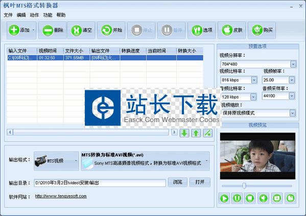 《枫叶MTS格式转换器》是一款功能强大、操作简单的MTS、M2TS视频转换工具。使用本MTS格式转换器可以帮助您将索尼和松下等摄像机录制的MTS、M2TS格式高清视频转换为其他流行的视频格式,如MP4、3GP、AVI、MPEG、WMV、ASF、MOV、RM、VCD、SVCD、DVD、MKV、FLV、SWF、MPG、MP3、WAV、WMA等几十种视频及音频格式。转换后的视频可以在iPod,iPhone,ipad,智能电视,智能手机,PSP,MP4播放器,MP5播放器,高清液晶电视,Zune播放器,PSP,PS3游戏机,平板电脑以及其他便携视频播放器完美播放。还可以将您的录制的MTS、M2TS高清视频格式,转换为DVD、SVCD、VCD视频格式,方便刻录光盘播放及保存。整个视频转换过程极为简单、并且转换快速极快,视频转换质量极高。同时支持批量转换,支持视频预览,可以同时转换多个文件。