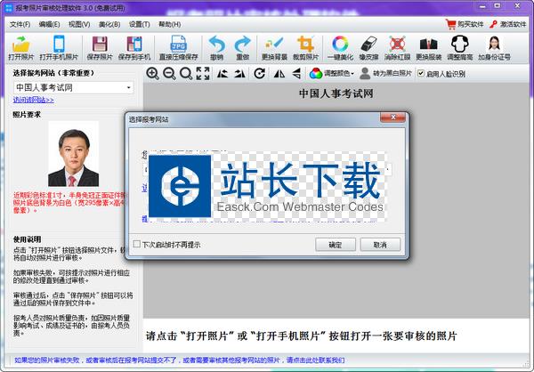 报考照片审核处理软件是一款专业易用的报名考试照片审核处理软件。支持多个报名网站的照片审核处理、支持快速处理照片为标准格式证件照、支持照片裁剪、更换照片背景、一键美化、橡皮擦功能、消除红眼、更换服装、调整肩高等功能。操作简单,审核准确。