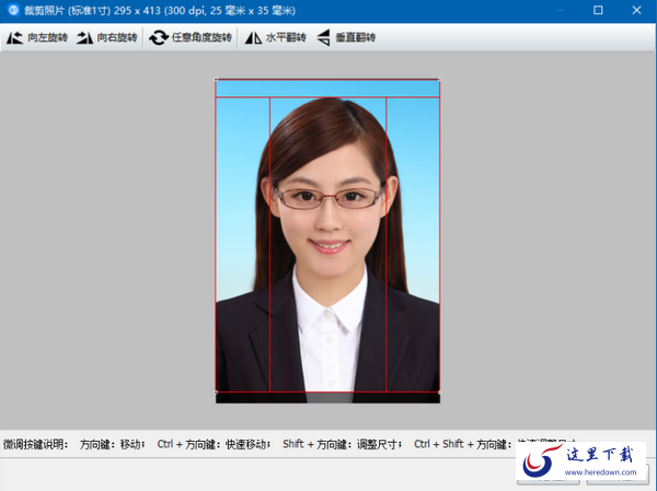 2. 您可以使用软件的裁剪工具,将照片裁剪为照片规格需要的尺寸,如下图所示: