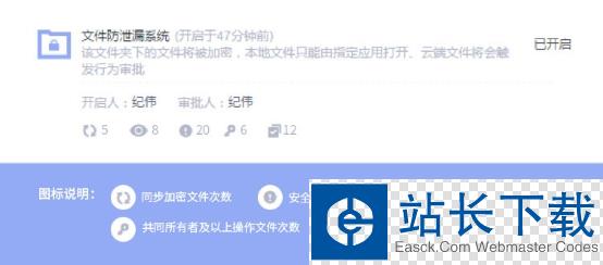 所有开启防泄漏的文件夹在云端和本地均会带上加密角标,并且开启后均有相关操作数据统计,包括同步加密文件次数、安全打开加密文件次数、阻止不安全打开加密文件次数、高权限人直接操作次数、通过行为审批操作次数等,所有存在风险的操作行为清晰可见。