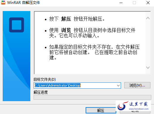 2.点击【浏览】自定义安装文件位置,点解【解压】