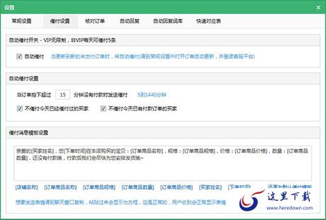 点击软件主界面 设置 按钮,进入设置后,再点击 催付设置。