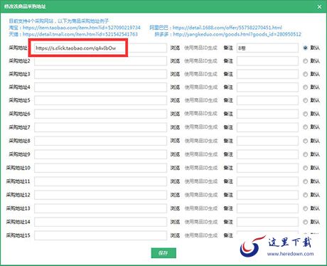 ③第一次代购需要填写代购商品的地址,支持淘宝天猫和阿里巴巴,如下图所示: